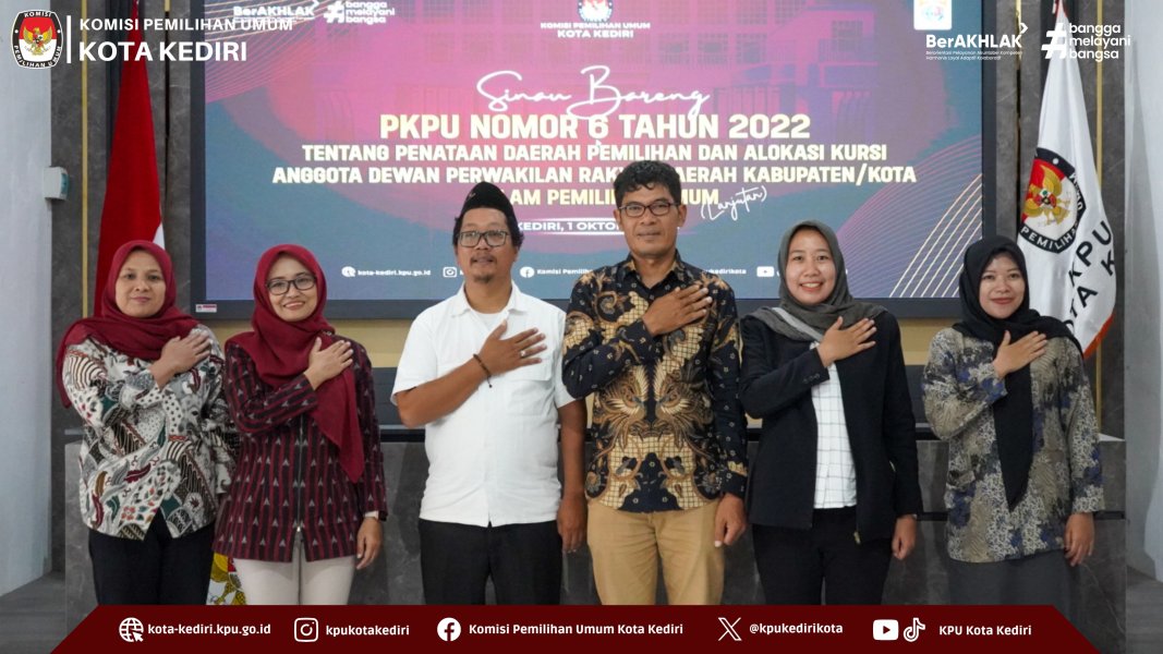 Kediri (kota-kediri.kpu.go.id) — Komisi Pemilihan Umum (KPU) Kota Kediri kembali menggelar kegiatan Sinau Bareng, kali ini mengangkat tema “Penataan Daerah Pemilihan dan Alokasi Kursi berdasarkan Peraturan KPU Nomor 6 Tahun 2022”. Kegiatan ini dilaksanakan pada Rabu (1/10) di Rumah Pintar Pemilu (RPP) KPU Kota Kediri dan turut dihadiri oleh jajaran Bawaslu Kota Kediri.