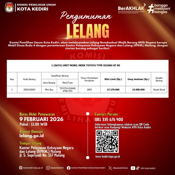 PENGUMUMAN LELANG 1 UNIT MOBIL TOYOTA KIJANG KF80