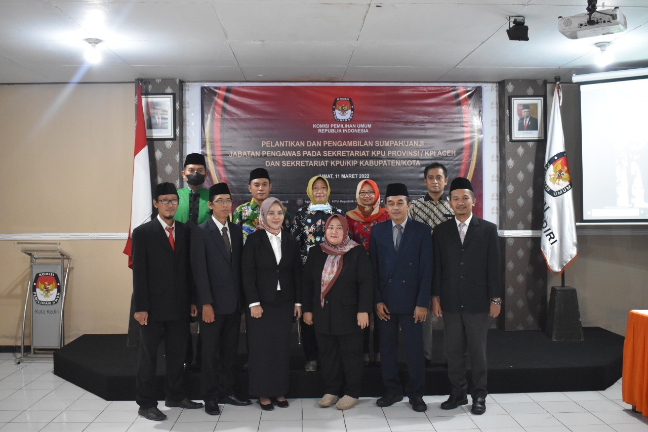 Di lingkungan Sekretariat KPU Kota Kediri sendiri ada 6 ASN yang dilantik dan diambil sumpahnya untuk menduduki jabatan pengawas baik di KPU Kota Kediri maupun di KPU Kab/Kota lain. ASN tersebut antara lain : Ermawanto ( Kasubbag Keuangan ,Umum dan Logistik pada Sekretariat KPU Kota Kediri),Henny Nurdiany (Kasubbag Hukum dan SDM pada Sekretariat KPU Kota Kediri), Arif Suryawan (Kasubbag Teknis dan Hupmas pada Sekretariat KPU Kota Kediri), Annisa Dyah Kusuma (Kasubbag Program dan Data pada Sekretariat KPU Kota Kediri), Zaenuddin Mahfud (Kasubbag Program dan Data pada Sekretariat KPU Kabupaten Blitar), Donny Hendrawan (Kasubbag Teknis dan Hupmas pada Sekretariat KPU Kabupaten Kediri). Suroto Sekretaris KPU Kota Kediri mengaku bangga kepada jajarannya dan memberikan semangat terutama kepada pejabat yang dilantik, dimanapun dan apapun posisinya agar tetap memberikan yang terbaik dalam mempersiapkan penyelenggaraan Pemilu dan Pemilihan 2024 nanti.