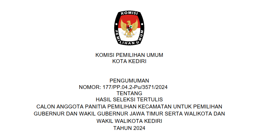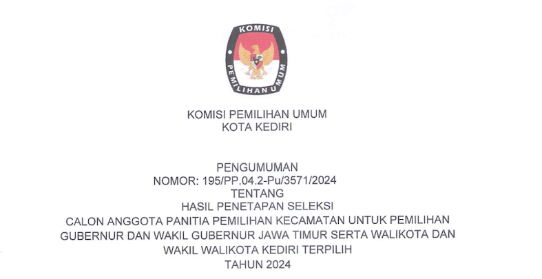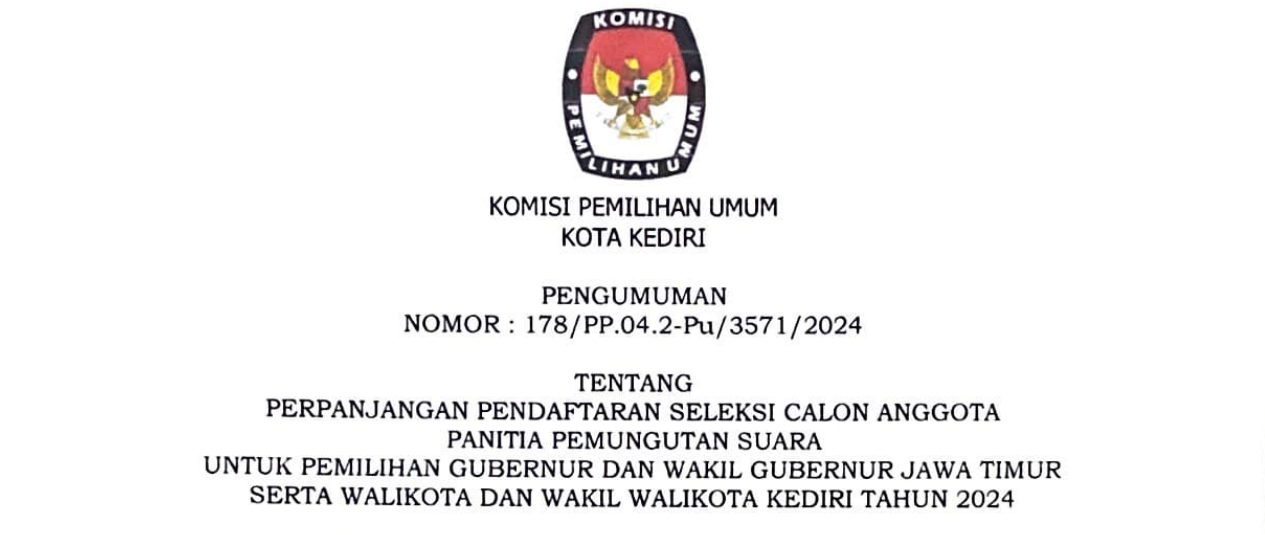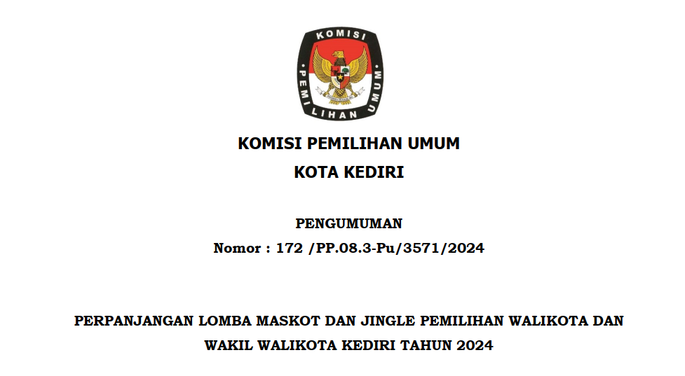 Pengumuman Perpanjangan Lomba Maskot dan Jinggle Pemilihan Walikota dan Wakil Walikota Kediri Tahun 2024 dengan Tahapan sebagai berikut :