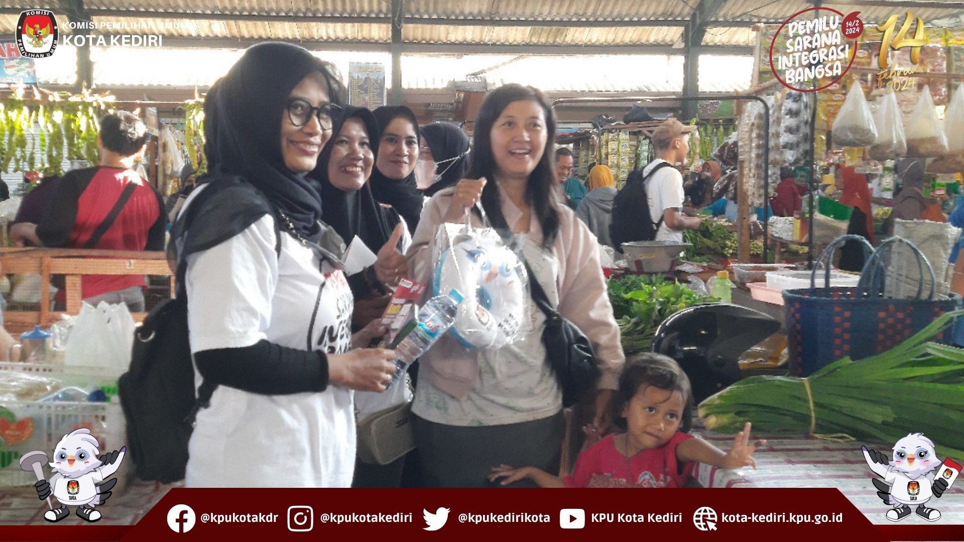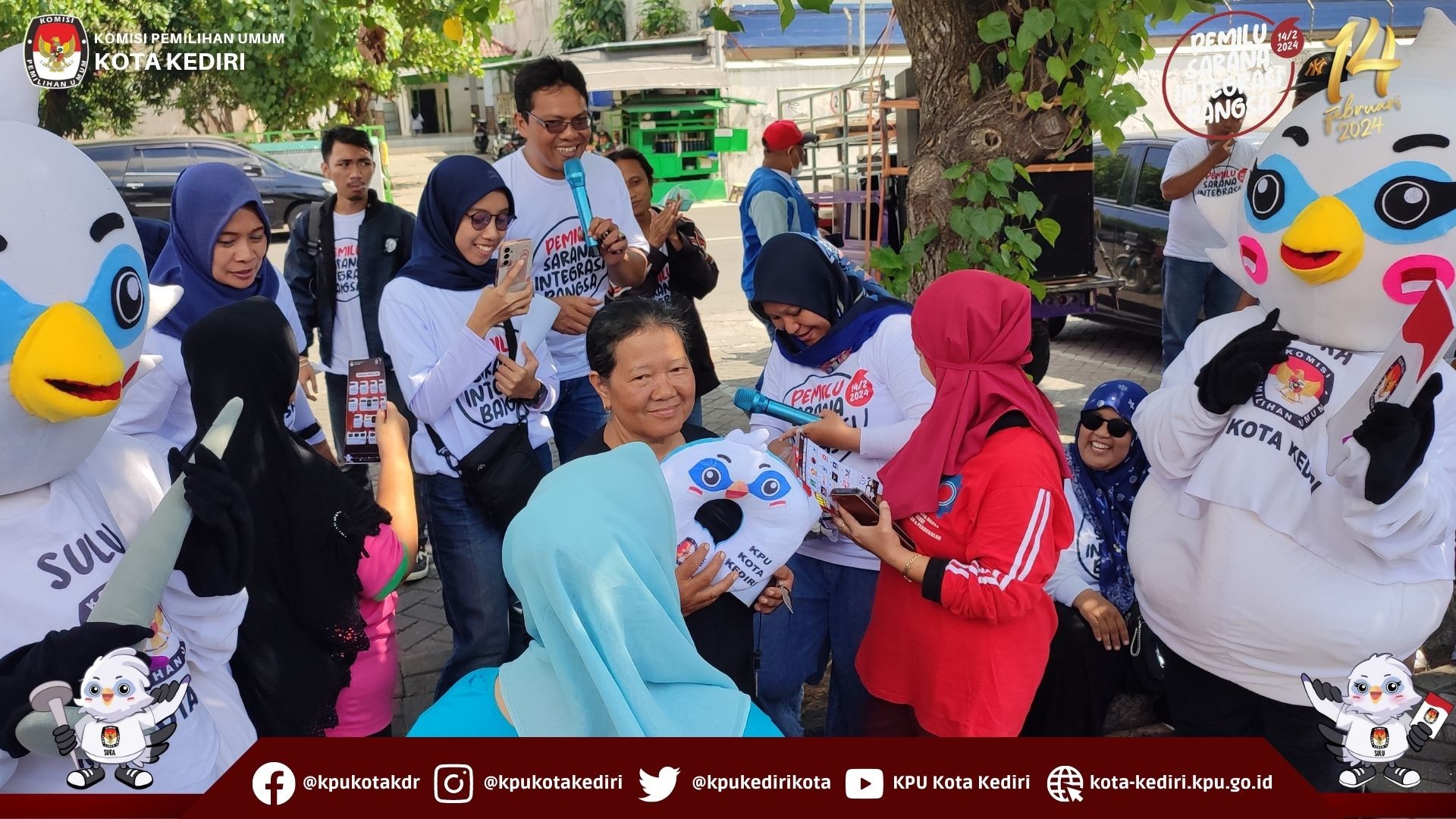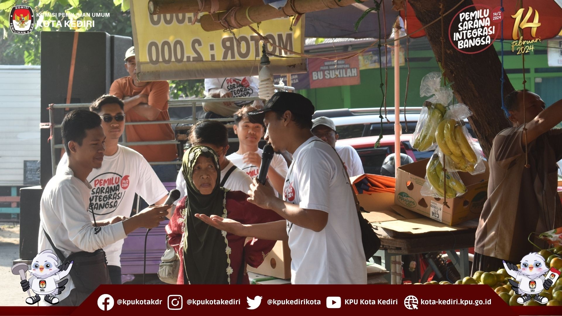 kota-kediri.kpu.go.id – KPU Kota Kediri di hari kelima Rabu (28/6) Agenda Kirab Pemilu 2024, melakukan Grebek Pasar dan Ledang di Kawasan Kecamatan Pesantren. Pada Apel dan briefing Komisioner KPU Kota Kediri Wahyudi mengingatkan untuk selalu semangat dalam melakukan setiap kegiatan, dalam hal ini Kirab Pemilu dikarenakan merupakan agenda nasional yang tidak setiap Kota/Kabupaten mendapatkan kesempatan istimewa ini, serta dihimbau pula untuk tetap menjaga ketertiban, santun, serta ramah selama pelaksanaan kegiatan. Agar masyarakat dapat menerima maksud dan tujuan kita dengan baik. Juga diingatkan kepada seluruh PPK dan PPS se-Kecamatan Pesantren untuk mensosialisasikan kepada masyarakat pengunjung pasar dalam acara Grebeg Pasar, serta masyarakat yang sedang melakukan aktivitas di sepanjang rute ledang keliling yakni: • Sosialisasikan Pemilu kepada masyarakat khususnya Kota Kediri pada tanggal 14 Februari untuk melaksanakan pencoblosan. • Di Kota Kediri terdapat 18 Partai yang akan memeriahkan Pemilu 2024. • Untuk mengecek apakah sudah terdaftar di daftar pemilih atau belum yang dapat dilihat melalui Check DPT Online dengan link cekdptonline.kpu.go.id Pada kegiatan ini, PPK dan PPS se-Kecamatan Pesantren saat berada di Pasar Pahing dan Pasar Bawang memberikan kuis terkait Pemilu tahun 2024, seputar tanggal pelaksanaan pemilu, bagaimana cara cek apakah sudah terdaftar sebagai pemilih, nantinya akan melakukan pemilihan apa saja dalam pemilu, berapa partai politik yang akan berpartisipasi, serta mengenai maskot sura sulu, jumlah dapil di kota kediri serta alamat rumah sudah ditempeli sticker coklit atau belom. Selain itu juga membagikan flayer yang berisi informasi tentang dapil, tahapan pemilu, cek DPT online Pemilu 2024, peserta pemilu beserta nomor urutnya kepada seluruh masyarakat yang ada di wilayah Pasar Pahing dan Pasar Bawang, serta masyarakat yang berada dalam rute ledang keliling. Ketika grebeg Pasar dan ledang keliling, PPK dan PPS melakukan kuis dan pembagian flayer dan souvenir . Selain itu, lagu Jingle Pemilu 2024 dibunyikan untuk menambah semarak acara Grebeg Pasar dan Ledang keliling beserta sosialisasi pemilu, dan ajakan hadir di tps untuk memberikan suaranya melalui tps terdekat di pemilu 2024. Antusiasme Masyarakat yang turut serta dalam kegiatan Grebeg Pasar dan Ledang Keliling menjadikan acara semakin meriah. Dengan mengikuti kuis, mendengarkan audio jingle pemilu, serta sosialisasi saat ledang keliling, kegiatan berbelanja di pasar bisa menjadi sarana meningkatkan edukasi bagi masyarakat. Sedangkan untuk teman-teman PPK dan PPS Se-Kecamatan Pesantren bisa menjadi sarana untuk melonggarkan kepenatan dan tetap menjaga koordinasi. Disediakan pula properti untuk berfoto bagi masyarakat Kota Kediri yang sedang berbelanja di pasar agar bisa berfoto bersama dengan Maskot Sura Sulu. sis