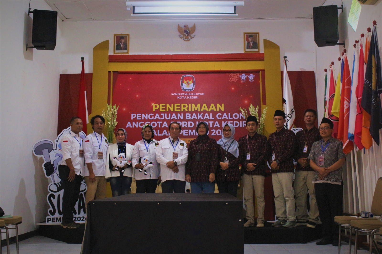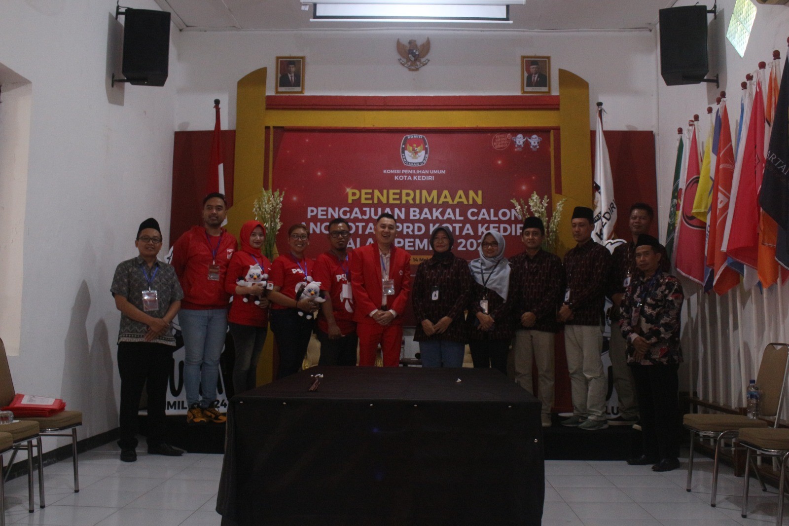 Kota-kediri.kpu.go.id –Hari ke 13 Pengajuan Bakal Calon Anggota DPRD Kota Kediri Pemilu 2024, Ketua DPD Partai Solidaritas Indonesia (PSI) Kota Kediri Ronny Siswanto, Sekretaris DPD PSI Hasanuddin, Petugas Penghubung/LO (Liaison Officer) dan Operator didampingi oleh pendukungnya mengajukan bakal calon Anggota DPRD Kota Kediri pada Pemilu 2024, Sabtu (13/5) pada pukul 14.16 Wib. Pengajuan diterima oleh Ketua KPU Kota Kediri Pusporini Endah Palupi, Divisi Sosdiklih Parmas dan SDM Moch Wahyudi, Divisi Perencanaan Data dan informasi Nasrudin, Divisi Teknis Penyelenggaraan Nia Sari, Divisi Hukum dan Pengawasan Reza Cristian didampingi Sekretaris KPU Kota Kediri Fany Wijayanto, serta disaksikan oleh Bawaslu Kota Kediri beserta jajarannya. Baca Juga : KPU KOTA KEDIRI TETAPKAN 232.539 PEMILIH DALAM RAPAT PLENO DPSHP PEMILU 2024. Sementara itu Ketua KPU Kota Kediri Pusporini Endah Palupi dalam sambutannya mengungkapkan bahwa berkas administrasi yang dikumpulkan nantinya akan melewati sejumlah tahapan, termasuk didalamnya proses verifikasi, perbaikan dan juga verifikasi perbaikan sebelum nantinya menjadi calon sementara (DCS). Menurut Ibu Ketua, langkah pertama yang dilakukan adalah cek dokumen kelengkapan berkas pengajuan telah lengkap apa belum lengkap. Batas waktu untuk pengajuan bakal calon adalah hingga sampai 14 Mei 2023 pukul 23.59 Wib. Sedangkan mulai tanggal 15 Mei 2023 KPU Kota Kediri melakukan verifikasi administrasi terhadap dokumen untuk memvalidasi kebenaran dan keabsahan dokumen. Baca Juga : KPU KOTA KEDIRI TERIMA PENGAJUAN BAKAL CALON PARTAI PERSATUAN PEMBANGUNAN (PPP) DI HARI KE 12 PENGAJUAN BACALEG “Setelah dokumen pendaftaran dinyatakan lengkap dalam SILON, KPU Kota Kediri akan menyampaikan tanda terima dan Berita Acara (BA) penerimaan pengajuan Bakal Calon kepada setiap pendaftar”, tegas Puspo. Pusporini juga menyampaikan bahwa partai bisa memberikan masukan kepada KPU mengingat KPU sebagai lembaga Pelayanan Publik. DPD Partai PSI Kota Kediri datang ke KPU Kota Kediri dengan mengajukan 15 bakal calon anggota DPRD. Berdasarkan hasil verifikasi oleh tim penerima berkas dan verifikator SILON KPU Kota Kediri menyatakan berkas Pendaftaran bakal calon anggota DPRD (bacaleg) dari DPD Partai PSI sudah dinyatakan lengkap dan diterima. Amr