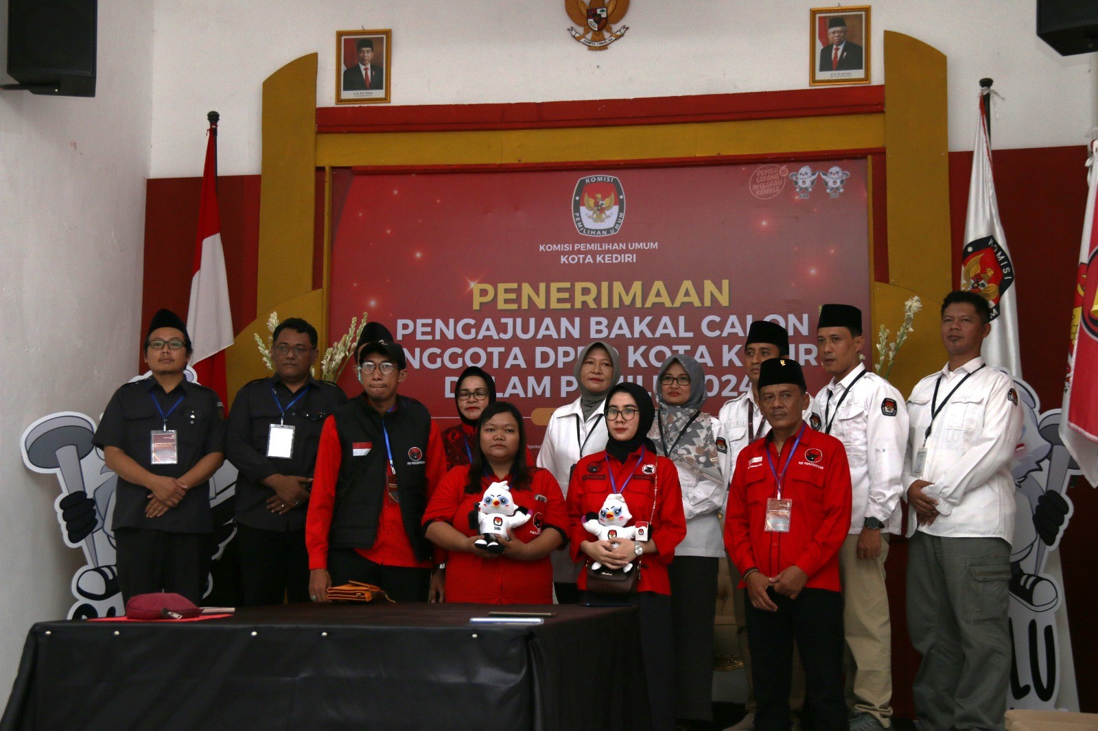 kota-kediri.kpu.go.id – Hari ini Kamis (11/5), Hari ke 11 Pengajuan Bakal Calon Anggota DPRD Kota Kediri Pemilu 2024, Ketua Partai Nasdem Kota Kediri Adi Suwono, sekretaris Choirudin Mustofa bersama Jajaran pengurus, LO dan Operator didampingi oleh pendukungnya mengajukan bakal calon Anggota DPRD Kota Kediri pada Pemilu 2024. Pengajuan diterima oleh Ketua KPU Kota Kediri Pusporini Endah Palupi dan Anggota Moch Wahyudi, Nasrudin, Nia Sari Reza Cristian didampingi Sekretaris KPU kota Kediri Fany Wijayanto. Turut hadir dalam proses tersebut Bawaslu Kota Kediri beserta jajarannya. Sementara itu Ketua KPU Kota Kediri Pusporini Endah Palupi dalam sambutannya mengungkapkan bahwa berkas administrasi yang dikumpulkan nantinya akan melewati sejumlah tahapan, termasuk didalamnya proses verifikasi, perbaikan dan juga verifikasi perbaikan sebelum nantinya menjadi Daftar calon sementara (DCS). Menurut Ibu Ketua, langkah pertama yang dilakukan adalah cek dokumen kelengkapan berkas pengajuan harus lengkap, benar dan memenuhi syarat, sedangakan berkas persyaratan bakal calon harus lengkap. Batas waktu untuk pengajuan bakal calon adalah hingga sampai 14 Mei 2023 pukul 23.59 Wib. Sedangkan mulai tanggal 15 Mei 2023 KPU Kota Kediri melakukan verifikasi administrasi terhadap dokumen untuk memvalidasi kebenaran dan keabsahan dokumen. “Setelah dokumen pendaftaran dinyatakan lengkap dalam SILON, KPU Kota Kediri akan menyampaikan tanda terima dan Berita Acara (BA) penerimaan pengajuan Bakal Calon kepada setiap pendaftar”, tegas Puspo. Pusporini juga menyampaikan bahwa partai bisa memberikan masukan kepada KPU mengingat KPU sebagai lembaga Pelayanan Publik. Partai Nasdem Kota Kediri mengajukan 30 bakal calon dari 3 Dapil di Kota Kediri. Amr