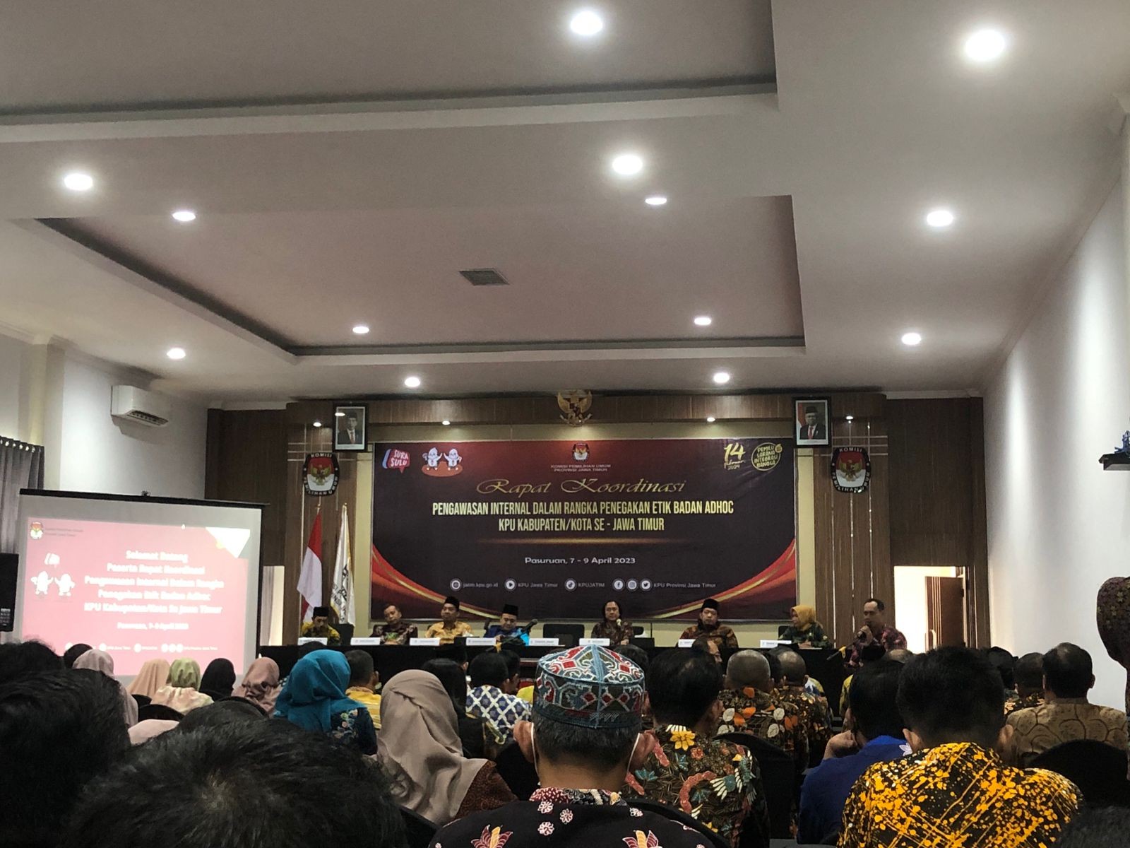 kota-kediri.kpu.go.id – KPU Kota Kediri mengundang PPK se-Kota Kediri pada acara Rapat Koordinasi Pengawasan Internal Dalam Rangka Penegakan Kode Etik Badan Adhoc (Rabu/1203). Dalam sambutan pembukaan, Reza Cristian Anggota Komisioner Divisi Hukum dan Pengawsan menyampaikan bahwa tujuan rapat koordinasi ini guna meningkatkan kinerja penyelenggara Badan Adhoc PPK maupun PPS pada masa Tahapan Pemilu 2024 dan rutinitas laporan kinerja dari PPK maupun PPS kepada KPU Kota Kediri. Materi disampaikan oleh Moch. Wahyudi Anggota Komisioner KPU Kota Kediri Divisi SDM dan Parmas tentang Kode Etik dan Pedoman Perilaku Penyelanggara Pemilu. Moch. Wahyudi memaparkan Kode Etik dan Perilaku sudah tertuang pada Peraturan DKPP No. 2 Tahun 2017 dan Peraturan KPU No. 8 Tahun 2019. Kode Etik dan Perilaku bertujuan untuk meningkatkan Intergritas dan Profesionalitas dengan menjalankan prinsip-prinsipnya. Dijelaskan juga Tentang Pedoman Teknis Penanganan Pelanggaran Kode Etik, Kode Perilaku, Sumpah/Janji, dan/atau Pakta Integritas Anggota Panitia Pemilihan Kecamatan, Panitia Pemungutan Suara, dan Kelompok Penyelenggara Pemungutan Suara. Ruang lingkup alur atau proses penanganan pelanggaran diantaranya Pengawasan Internal; Penerimaan aduan dan/atau laporan; Verifikasi dan Klarifikasi; Pemeriksaan; Pengambilan keputusan.sis