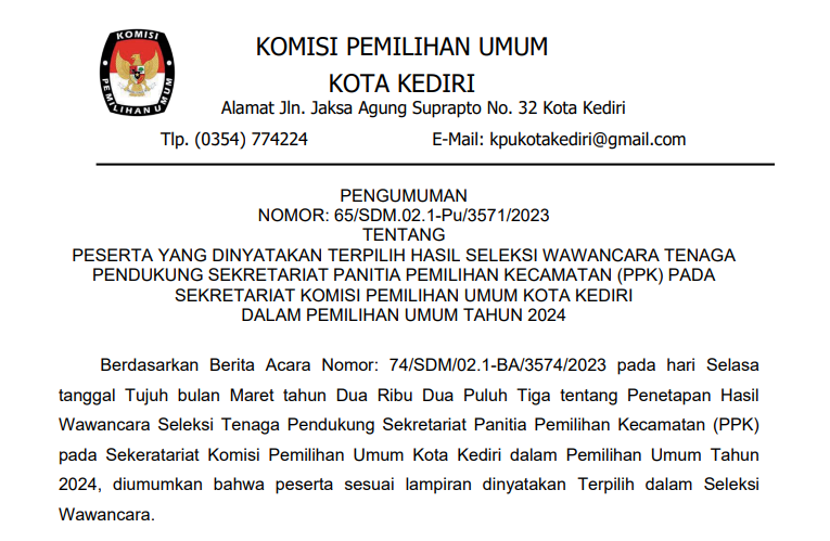 kota-kediri.kpu.go.id. Digagas oleh Divisi Hukum dan Pengawasan, Komisi Pemilihan Umum (KPU) Kota Kediri menyelenggarakan sinau bareng atas terbitnya peraturan KPU No 7 tahun 2023, Selasa (7/3) dengan materi disampaikan oleh Nasrudin divisi Perencanaan Data dan Informasi.
