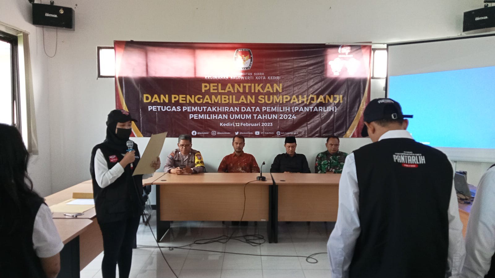 Kota Kediri, kota-kediri.kpu.go.id. KPU Kota Kediri menggelar Apel Kesiapan Pantarlih Pemilu 2024 secara serentak di 3 kecamatan di wilayah Kota Kediri, Minggu (12/2/2023). Apel Kesiapan Pantarlih Pemilu 2024 ini menandai kesiapan pantarlih dalam melaksanakan Coklit yang telah dicanangkan KPU Republik Indonesia. Coklit merupakan salah satu tahapan penyusunan daftar pemilih yang sangat krusial dan strategis bagi terselenggaranya Pemilihan Umum. Diharapkan, pemutakhiran data berjalan dengan baik dikarenakan pemutakhiran data pemilih menentukan bagi tahapan pemilu selanjutnya. Dalam PKPU Nomor 7 tahun 2022, petugas pemutakhiram data pemilih (Pantarlih) mempunyai peranan sangat krusial. Hal ini dikarenakan, pantarlih akan melaksanakan pencoocokan dan penelitian (coklit) untuk memastikan data pemilh valid, mutakhir dan bisa dipertanggungjawabkan. KPU Kota Kediri melaksanakan Apel serentak bersama PPK, PPS dan forkopimcam serta tokoh masyarakat yang terkonsentrasi di 3 kecamtan, yatitu Kecamatan Kota, Kecamatan Mojoroto dan Kecamatan Pesantren. Sesuai arahan ketua KPU RI, Bapak Hasyim Asy’ari bahwa pantarlih merupakan ujung tombak dalam pemutakhiran dan penyusunan daftar pemilih. Beberapa kesiapan yang harus dilakukan pantarlih diantaranya: berkoordinasi dengan tokoh masyarakat lokal, pantarlih wajib menggunakan atribut/kelengkapan pantarlih, megisi buku kerja untuk mencatat semua aktivitas yang dilakukan. Pesan Bapak Nasrudin, Komisioner pengampu perenecanaan, Data dan Informasi KPU Kota Kediri, bahwa KPU berupaya meningkatkan kualitas penyusunan daftar pemilih. “Semoga pemutakhiran data berjalan dengan baik dikarenakan pemutakhiran data pemilih menentukan bagi tahapan pemilu selanjutnya”, tegas Nasrudin. Untuk diketahui, 800 Pantarlih di Kota Kediri ditugaskan untuk melaksanakn coklit di seluruh kelurahan Kota Kediri setelah melaksanakan pelantikan dan bimbingan teknis yang dilakukan oleh PPS. Pantarlih juga dilengkapi dengan alat kerja berupa topi, rompi, buku kerja. Amr