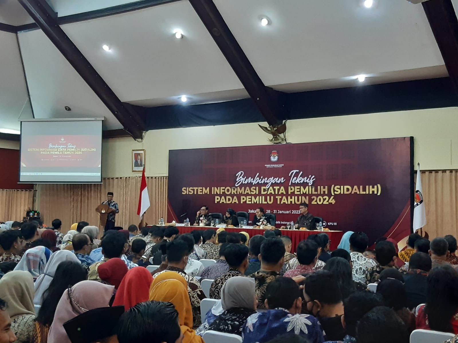 kota-kediri.kpu.go.id - Minggu (29/01) KPU Kota Kediri menghadiri acara Bimbingan Teknis (Bimtek) Sistem Informasi Data Pemilih (Sidalih) pada Pemilu Tahun 2024 di LPPI Kemang, Jakarta Selatan. Rakor tersebut di hadiri oleh Divisi Rendatin didampingi Admin/Operator Sidalih KPU Provinsi dan KPU Kabupaten/Kota se-Indonesia selama 2 (dua) hari sampai dengan tanggal 30 Januari 2023 yang dibagi sebanyak 2 (dua) gelombang. Dalam pembukaannya, Kapus Datin menyampaikan beberapa laporan kegiatan, yang salah satunya yaitu jumlah TPS masih dapat bertambah kedepannya seiring berjalannya waktu, beliau berharap pemetaan TPS benar-benar dipetakan secara maksimal. Betty Epsilon Idroos anggota KPU RI divisi data dan informasi menyampaikan bahwa pemetaan TPS merupakan kegiatan yang sangat perlu dilaksanakan segera dan penuh dengan ketelitian, selain dapat terpetakan dengan maksimal, juga erat kaitannya dengan pembentukan pantarlih. Senada dengan betty, Yulianto sudrajat selaku kepala perencanaan dan KUL menambahkan, penyusunan daftar pemilih merupakan kegiatan yang sangat penting, karena sangat penting hubungannya dengan pengadaan logistik. Saya sangat berharap DPT nantinya tidak ada versi DPTHP seperti di Pemilu 2019 lalu. dans