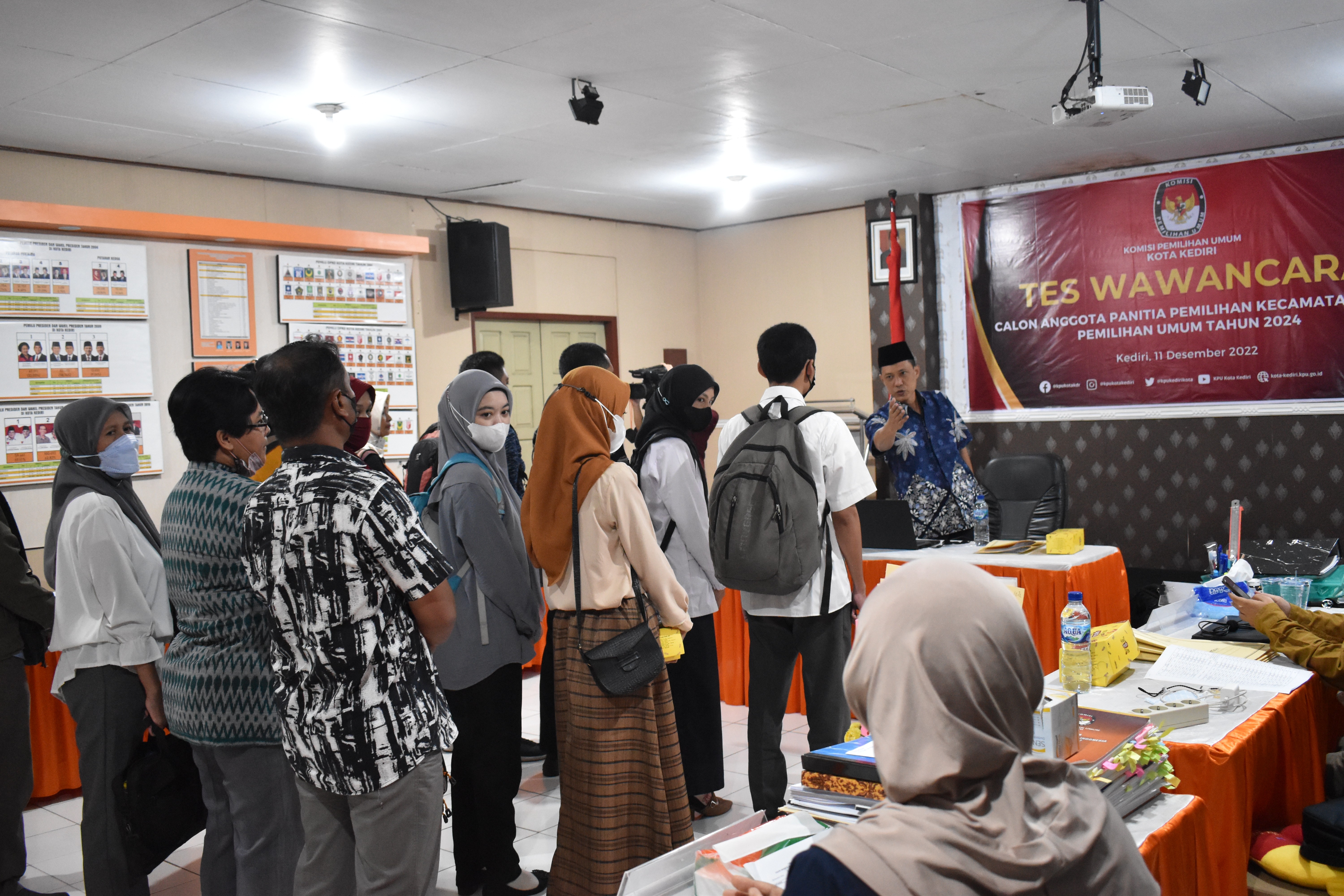 "Untuk kecamatan Mojoroto dan Kecamatan Kota sebanyak 17 orang karena nilai peserta dari peringkat 15-17 memiliki nilai sama, sehingga dipanggil semua, sedangkan Kecamatan Pesantren untuk peserta bisa langsung diambil 15 orang dari hasil test tulis karena peringkat 16 nilainya dibawah peringkat 15" ungkat Moch. Wahyudi, Anggota KPU Kota Kediri yang menggawangi divisi Sosialisasi Pendidikan Pemilih, SDM dan Partisipasi Masyarakat beberapa menit sebelum test wawancara dilaksanakan.