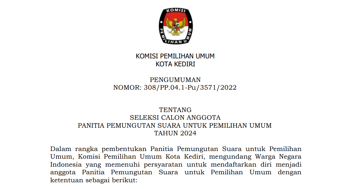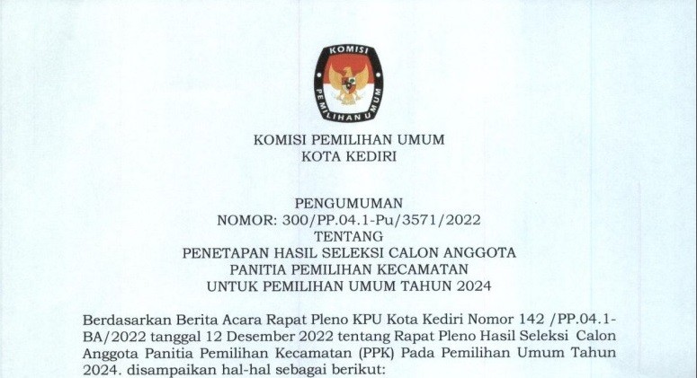 "Dari hasil wawancara ini nantinya, calon anggota terpilih yang kami harapkan bisa menjadi super team yang mampu membantu KPU Kota Kediri menyelenggarakan Pemilu 2024 nanti" harap Wahyudi. im