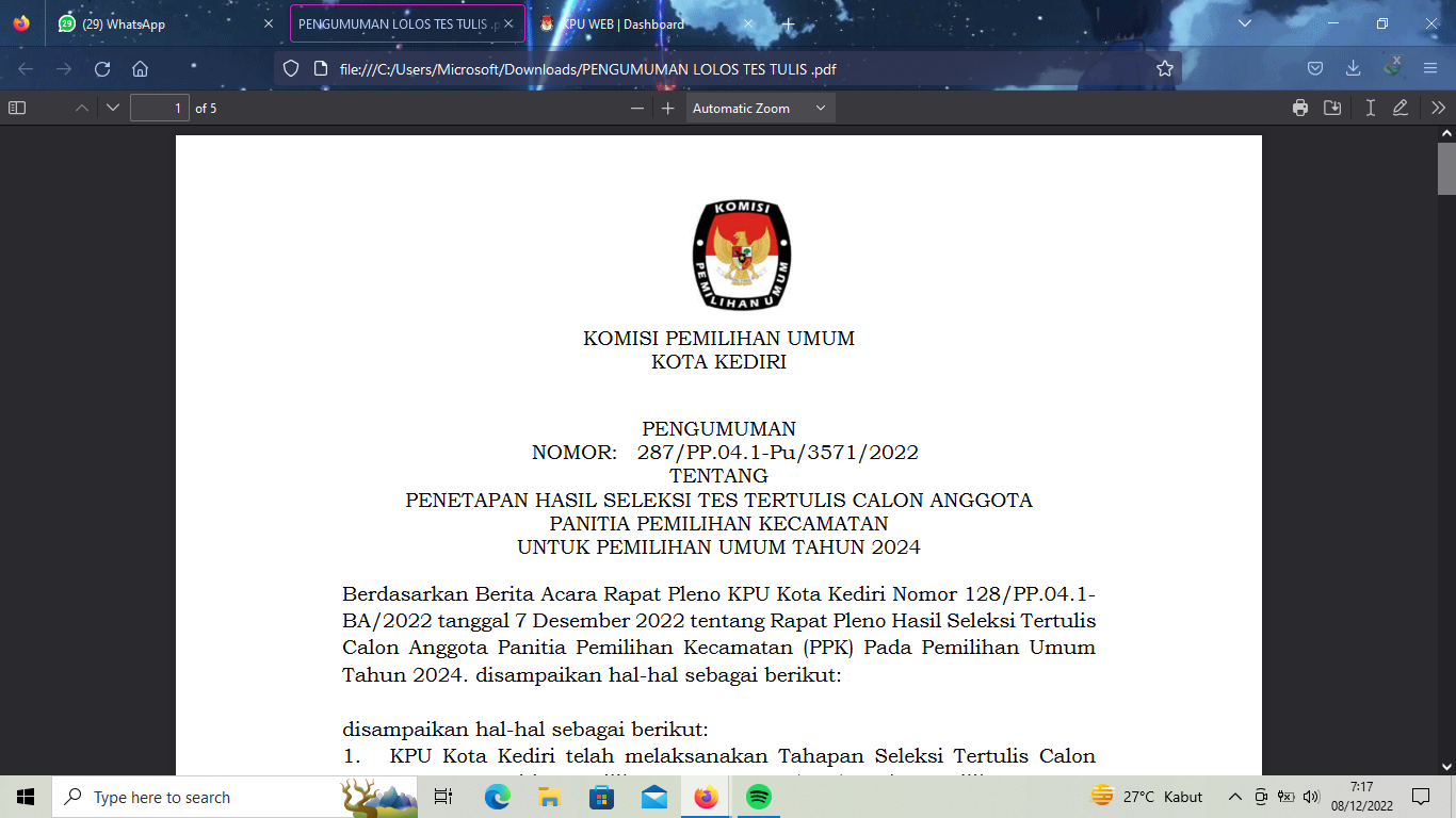 kota-kediri.kpu.go.id -Komisi Pemilihan Umum Kota Kediri hadiri kegiatan Bimbingan Teknis (Bimtek) Kehumasan dalam Penyelenggaraan Tahapan Pemilihan Umum Tahun 2024 (Pemilu 2024) yang diselenggarakan Komisi Pemilihan Umum Provinsi Jawa Timur (KPU Jatim) pada Jumat – Minggu, 9 – 11 Desember 2022, bertempat di KPU Kabupaten Pasuruan, Jalan Sudarsono nomor 1 Pasuruan.