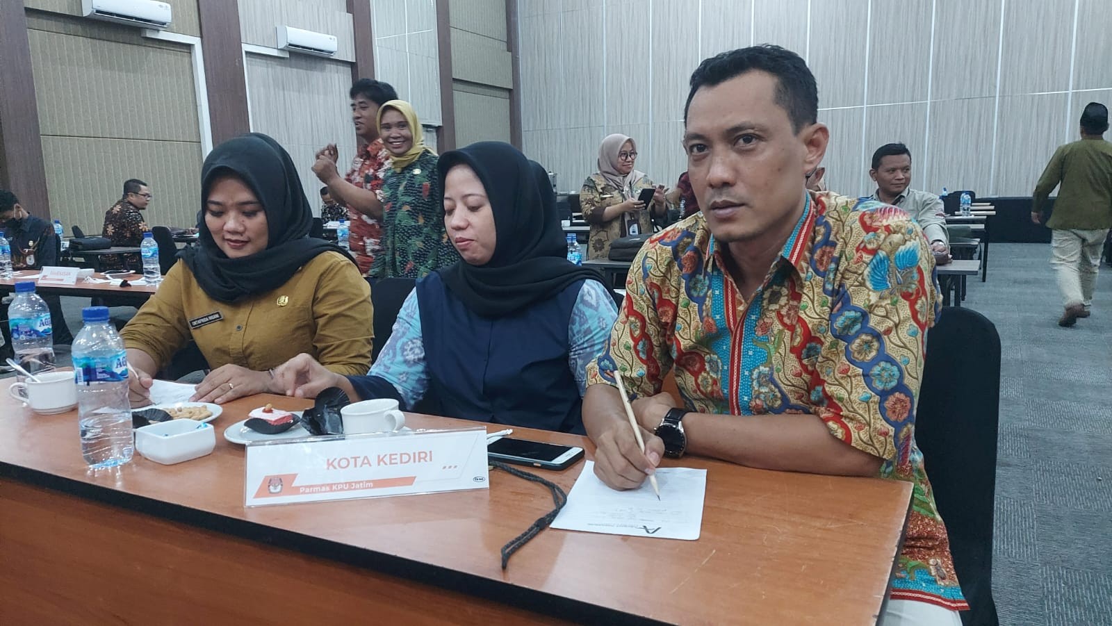 Bimtek diikuti oleh 152 orang yang terdiri dari Divisi Sosdiklih, Parmas dan SDM; Sekretaris; dan dua orang staf yang membidangi kehumasan dari 38 KPU Kabupaten/Kota se-Jawa Timur. Adapun KPU Kota Kediri diwakili oleh Wahyudi Divisi soadiklih Parmas SDM, Fany Wijayanto Sekretaris serta Oktafrida dan Dhinar Hastiti staff.
