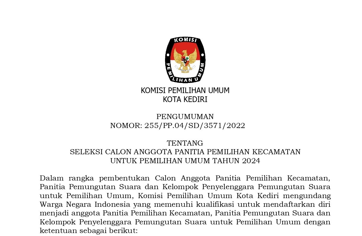 Ditambahkan oleh Wahyudi Komisioner KPU Kota Kediri yang membidangi sosialisasi dan SDM, dalam pendaftaran PPK memang para pendaftar dapat secara mandiri mendaftar melalui aplikasi SIAKBA adapun yang merasa kesulitan dapat langsung datang ke kantor KPU Kota Kediri Jl Jaksa Agung Suprapto 32 Mojoroto Kediri.