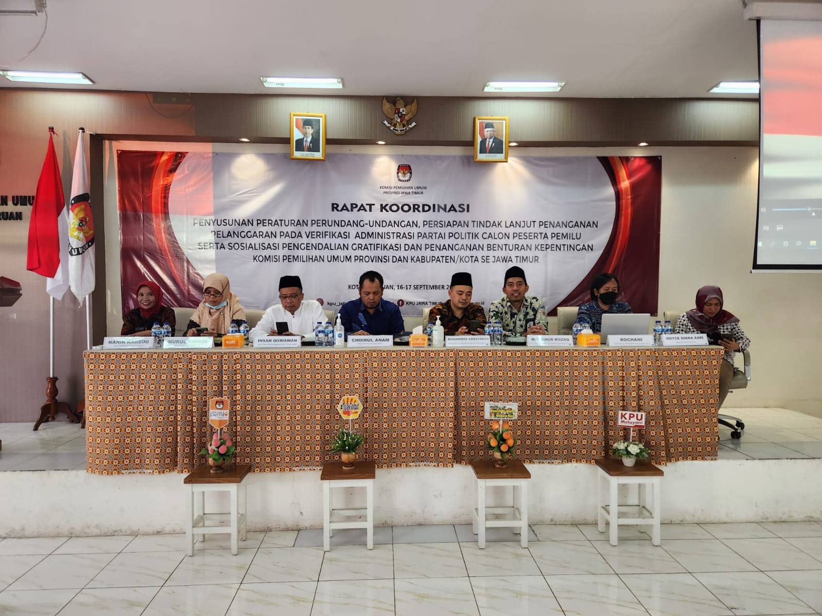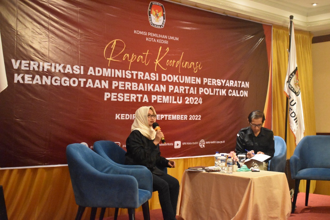 kota-kediri.kpu.go.id - Bertempat di Golden Resto, Jalan Hayam Wuruk 121-125 Kota Kediri, KPU Kota Kediri kembali melaksanakan Rapat Koordinasi dengan Pengurus Partai Politik (Parpol) di Kota Kediri, Bawaslu Kota Kediri dan Kesbangpol Kota Kediri. Dalam Kesempatan ini, KPU menyampaikan kepada partai politik supaya mempersiapkan diri untuk perbaikan dokumen yang bisa dilihat di akun Sipol masing-masing parpol. Nia Sari, Divisi Teknis Penyelenggaraan KPU Kota Kediri mengingatkan kepada partai politik yang dokumen keanggotaanya harus diperbaiki. KPU Kota Kediri menyampaikan keanggotaan yang saat ini masih berstatus Belum Memenuhi Syarat (BMS) nantinya akan menjadi Tidak Memenuhi Syarat (TMS) jika gagal diperbaiki oleh Parpol. Masa perbaikan dokumen persyaratan dan penyampaian dokumen persyaratan perbaikan oleh Partai Politik sendiri dilaksanakan mulai 15-28 September 2022. KPU Kota Kediri menghimbau kepada masing-masing Pengurus Parpol di Kota Kediri untuk lebih intensif lagi dengan pengurus ditingkat Provinsi dan Pusat. KPU RI akan melakukan verifikasi administrasi terhadap dokumen persyaratan perbaikan pada 29 September 2022 sampai dengan 12 Oktober 2022. Kemudian KPU Kab/Kota melakukan verifikasi administrasi dokumen persyaratan perbaikan keanggotaan hasil perbaikan pada 1-9 Oktober 2022. Nia Sari juga menyampaikan bahwa Hasil Verifikasi Administrasi Keanggotaan KPU Kota Kediri beberapa waktu lalu bahwa dari seluruh partai politik yang keanggotaanya diverifikasi, sebanyak 14,70 memenuhi syarat minimal anggotaanya. Dari hasil verifikasi, untuk yang keanggotaan Belum Memenuhi Syarat sebanyak 13,69 % dikarenakan NIK typo, sedangkan yang disebabkan oleh KTP/KTA sebanyak 86,31%. Sedangkan yang Tidak Memenuhi Syarat dikarenakan NIK tidak ada di DPB 1,38%, Ganda Eksternal 25,48%, Ganda Identik 8,52%, Potensi Ganda 0,78%, Pekerjaan 0,33%, KTP luar kota Kediri 63,49%. Terkait dengan pelaksanaan Verifikasi keanggotaan Partai Politik ini KPU juga menerima tanggapan masyarakat sebanyak empat yaitu Termin Pertama 1 Agustus- 14 September 2022, Termin Kedua 15 September-12 Oktober 2022, Termin Ketiga 15 Oktober 9-Nopember 2022 dan Termin Keempat 10 Nopember 7-Desember 2022. KPU Kota Kediri menekankan kepada pengurus partai politik di Kota Kediri untuk secara cerpat memenuhi syarat keanggotaanya serta intensif berkomunikasi dengan pengurus di atasnya. im