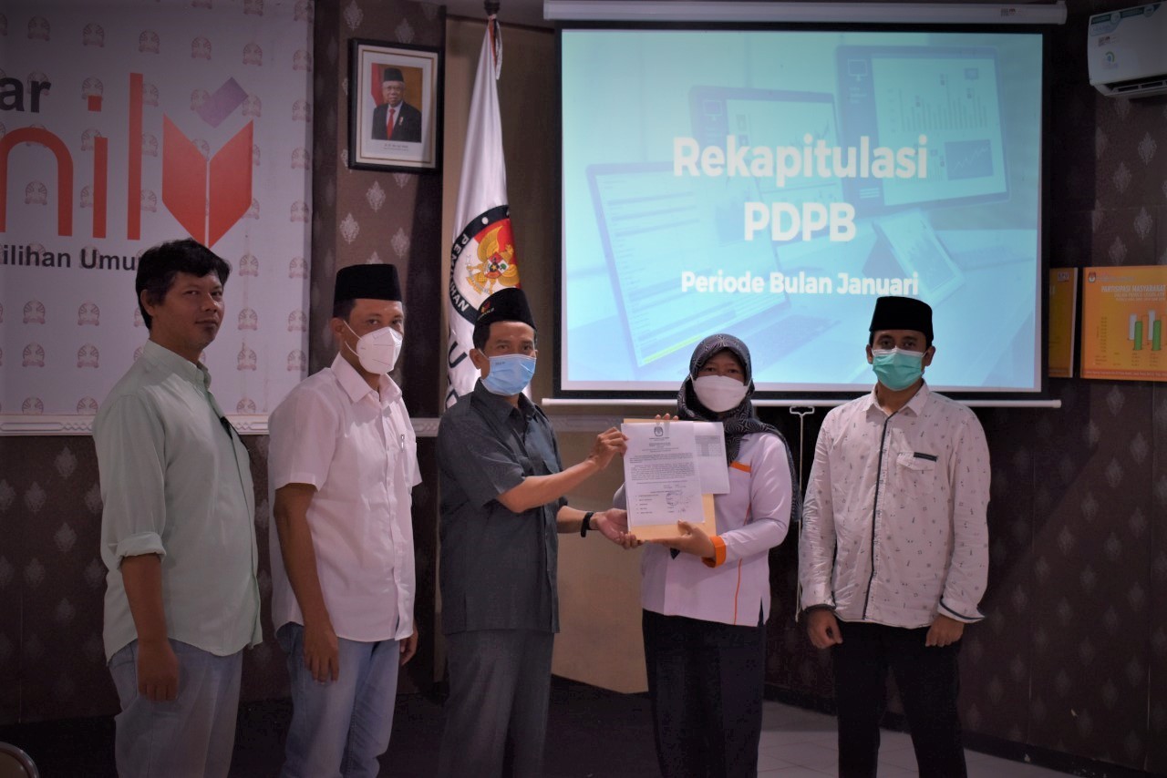 Diakhir, KPU Kota Kediri menyerahkan Berita Acara Pleno Pemutakhiran Data Pemilih Berkelanjutan Periode Januari 2022 kepada Ketua Bawaslu Kota Kediri. nhi